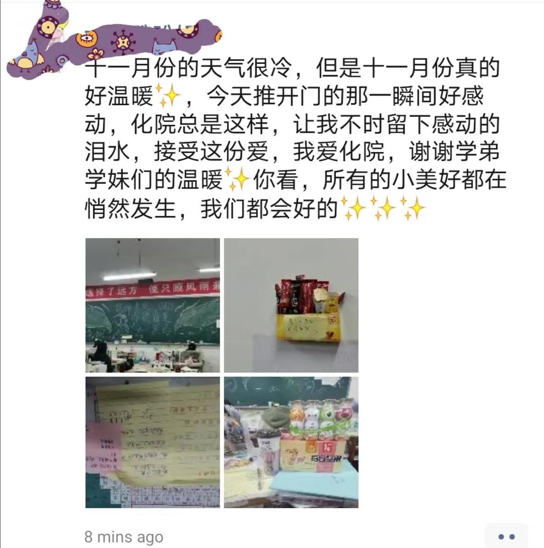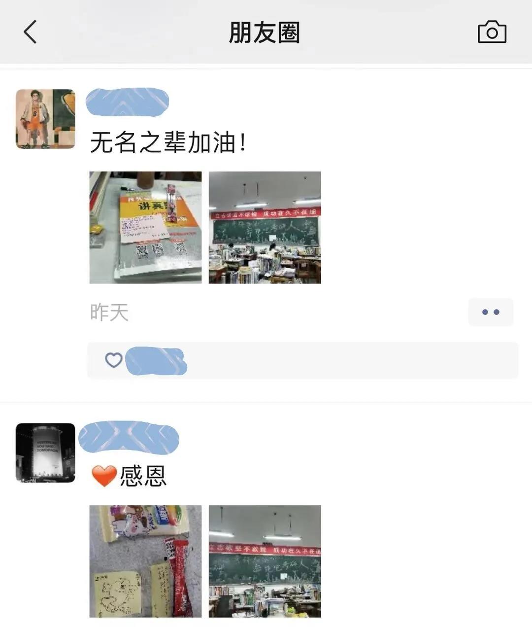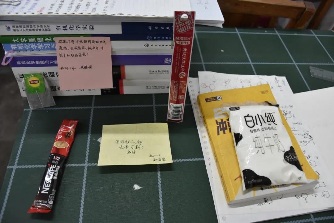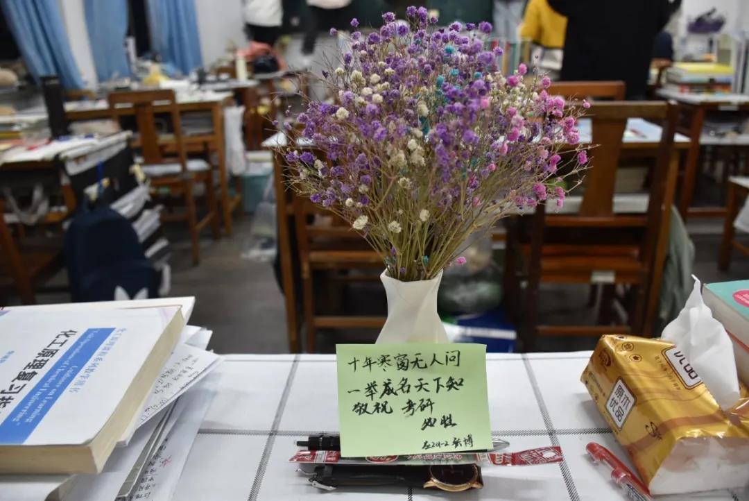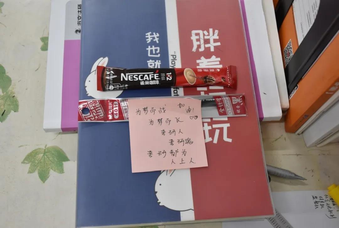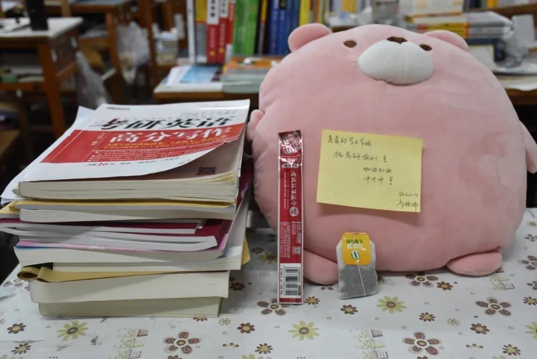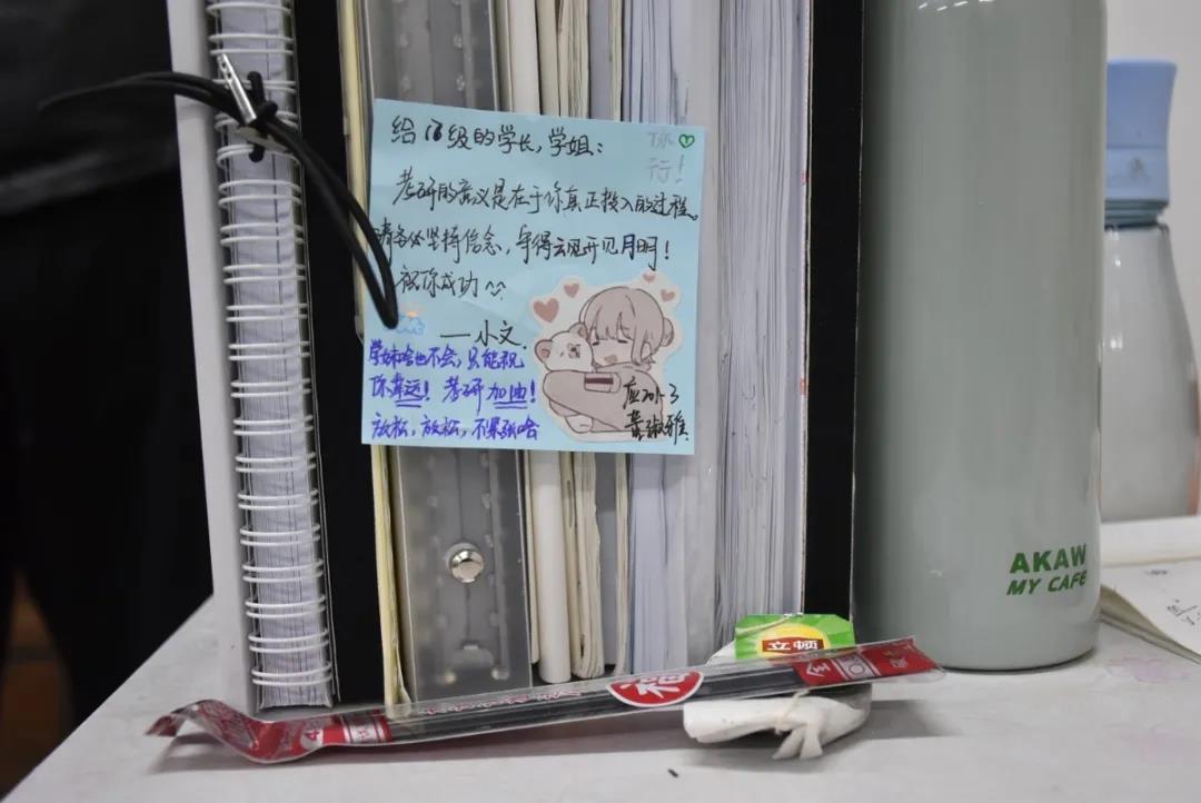一张张暖心的便签,承载着学弟学妹们对考研人追梦之旅的祝福。