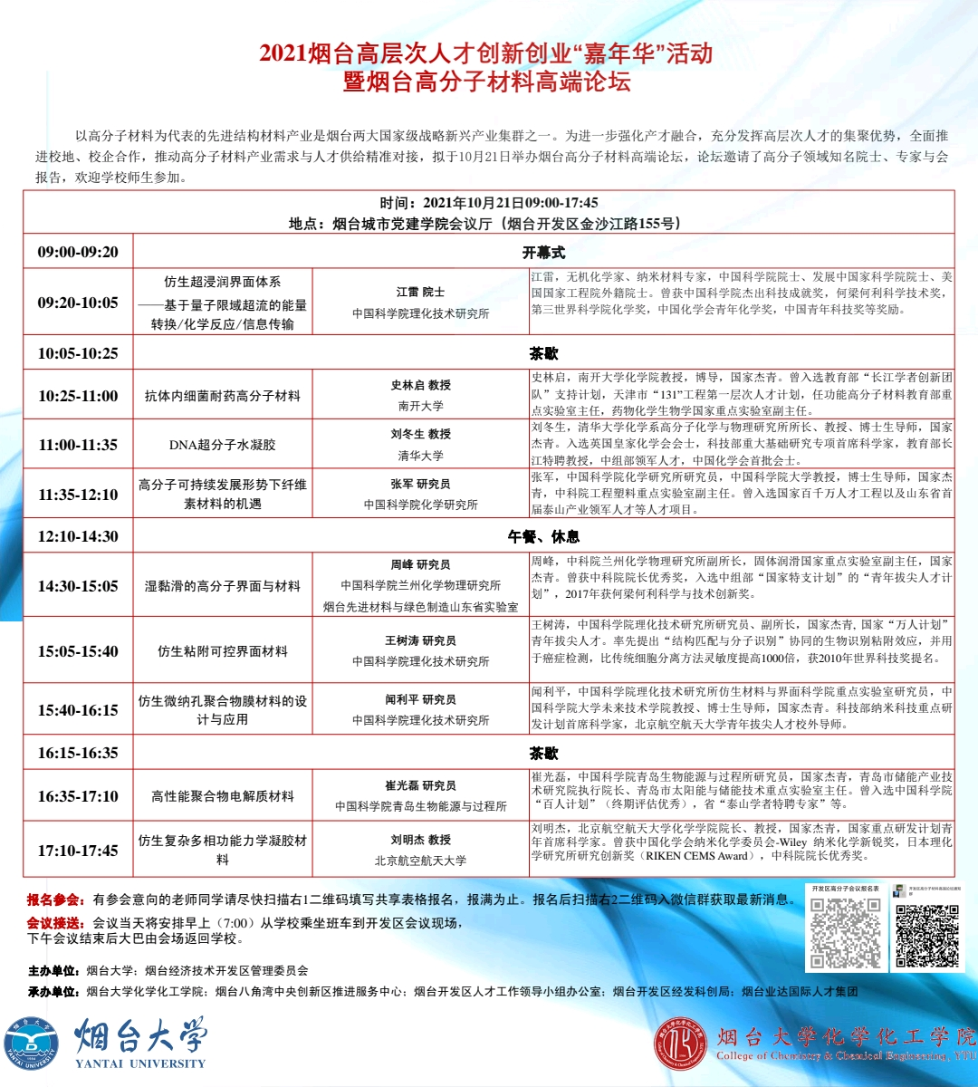 暨烟台高分子材料高端论坛