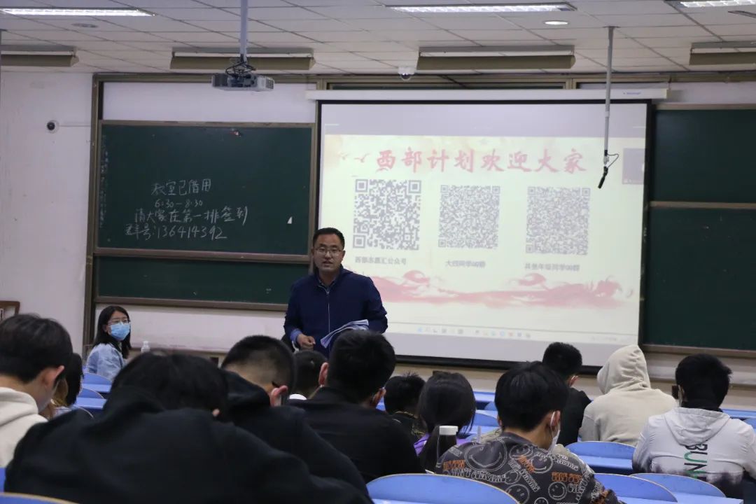 2022届毕业生就业创业工作动员大会暨“西部计划”宣讲会,宣讲会激发了同学们志愿服务西部计划的热情和动力,帮助毕业生合理地调整自己的就业理想和价值取向,树立主动融入国家发展大局观念。