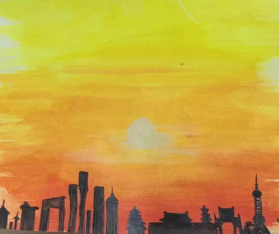 作品元素也比较简单,朝阳和阳光下城市的缩影构成了一副小小插画。人生百岁,垂暮老矣;吾团百年,青春焕发!朝阳象征活力,也代表着我们共青团无限的生命力。
