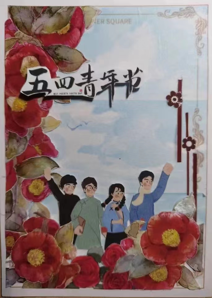 蓝天红花相掩映,青年的呐喊振聋发聩。百年前,面对中华民族的危亡时刻,青年学生义愤填膺,发出了不屈的呐喊;今日,新时代的青年仍不断在五四精神中汲取力量,我们当代青年应不断学习知识,大胆创新,练就过硬本领,从而肩负起时代的重任,为建设中国特色社会主义事业和实现中华民族伟大复兴的中国梦贡献自己的力量!