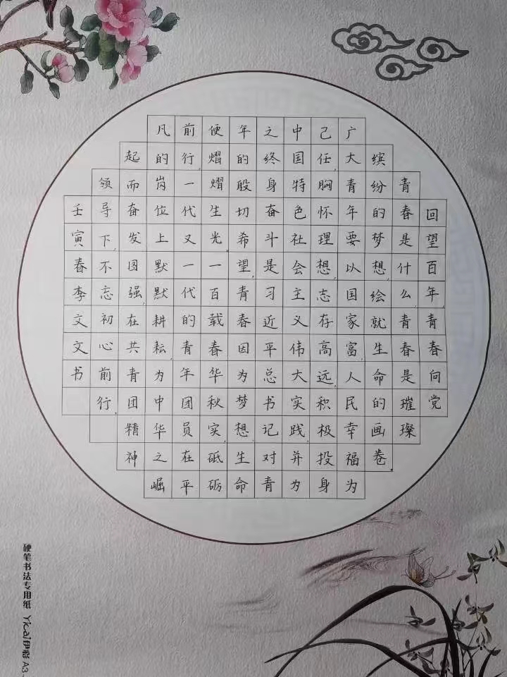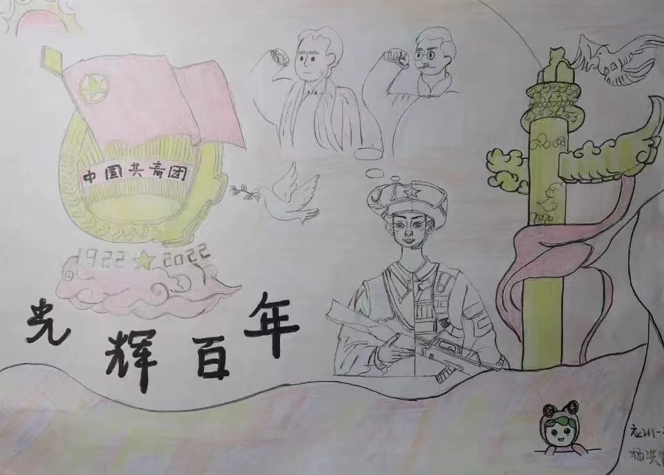 回望百年,青春向党。每一个勇毅前行的足迹中,都饱含着奋斗的艰辛。峥嵘百年,与党同行,我在丹青翰墨中书写建团百年盛世辉煌,为建团百年献上最诚挚的祝福!
