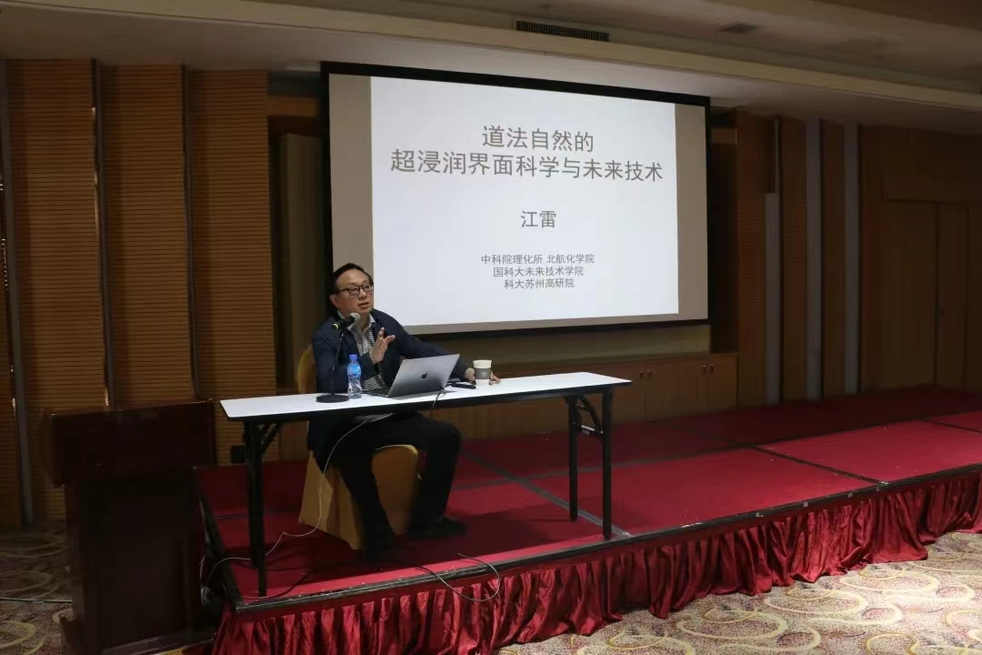 座谈会前江雷院士做了题为“原创科研的三个境界和八个层面”的学术报告。近百名师生现场参加,同步进行了网上直播。江雷院士结合自己回国二十多年来的科研经历,聚焦“如何更好地进行原创科研”,提炼出原创科研选题的“三个境界和八个层面”:有所发现、有所发明和有所创造三个境界;改写教科书、领域遗留挑战、总结普适规律、研制先进仪器、研发关键技术、重视偶然发现、应用全新理论和生命启发科研的八个层面,给师生做了精彩纷呈的报告,并与现场师生进行了交流。报告全程江雷院士旁征博引,既深入浅出,又发人深省,使与会师生深受启发,数次赢得全场听众的热烈掌声,其“道法自然”的创新科研思路对广大教师和同学的科研工作起到了很好的启发和指导作用,大家纷纷表示报告开拓了学习视野和科研思路,获益匪浅。