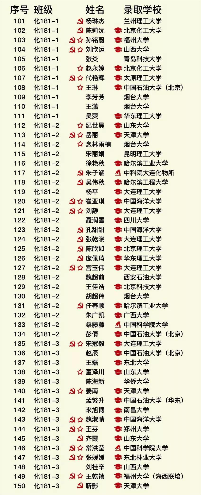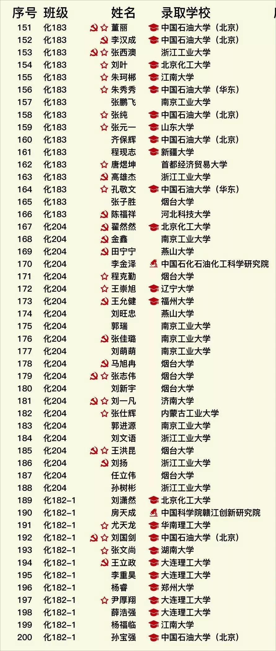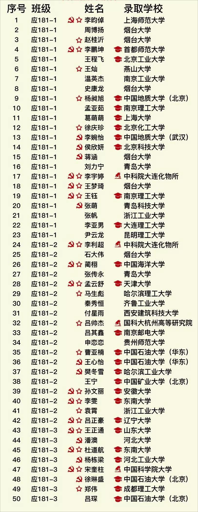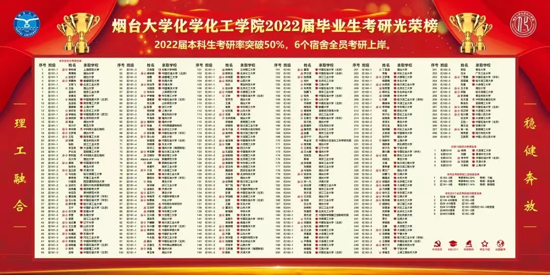 以2022年为例,截止到目前,2022届毕业生共有55名同学签约国有企业单位,其中25人签约万华化学集团,6人因考取研究生放弃签约;其他性质企业签约68人,涉及山东省内、省外32家优质企业;共有6人签约公务员和事业单位,其中2人为拔尖选调生,2人考取基层公务员,2人进入北京理工大学鲁南研究院工作;4人参加到西部计划服务基层项目,参军1人。