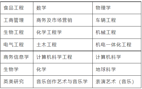 交流生开放绝大部分专业,包括教育、会计、金融、市场营销、经济学、生物科学、生物化学、化学、化学工程、机械工程、土木工程、刑事司法、计算机科学、信息系统、数据科学、电气电子工程、环境科学、语言学、法学、管理学、数学、统计学、媒体与传播、音乐等等。详情可登陆