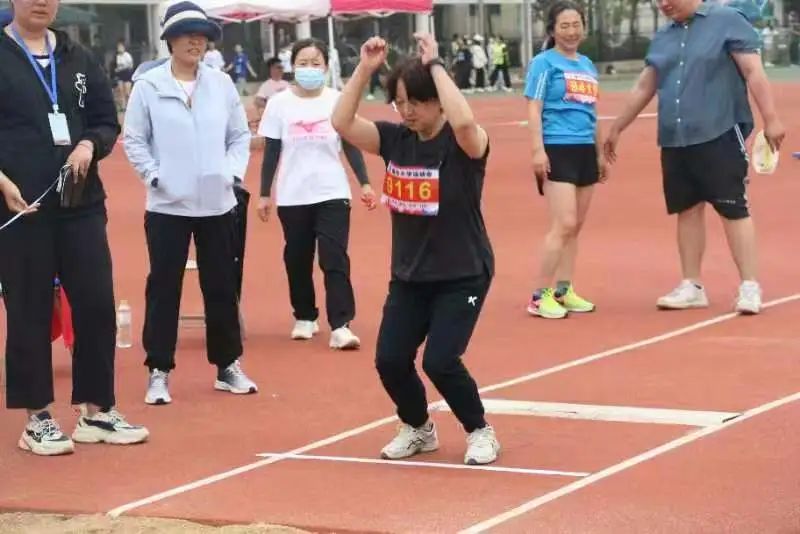 王慧敏老师正在进行立定跳远比赛