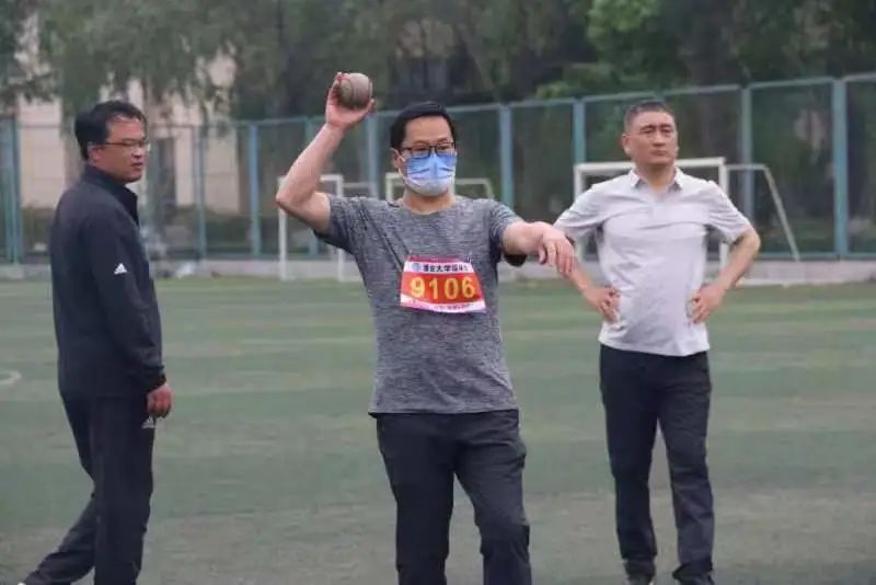 胡大鹏老师正在进行垒球掷准比赛
