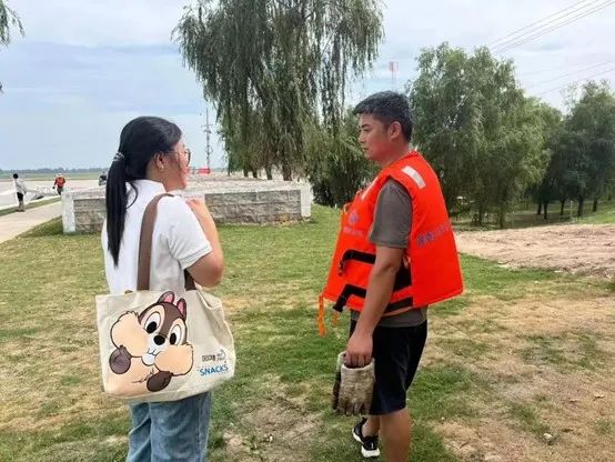 2023年7月31日,实践队第三小组的“化小水”们来到了距离入海口东营市最近的城市——实践活动的第四站滨州市,探寻山东黄河“终点”的水质和民情。滨州市滨城区距离黄河入海口仅一步之遥,这部分黄河水质代表了黄河治理的最终结果,影响着黄河三角洲经济带的发展空间,影响着入海口冲积平原的粮食安全。“化小水”们来到了滨州市滨城区黄河河务局附近,对当地居民进行采访交流并了解到黄河水质的情况对其日常生活的影响。对当地的黄河水进行采样,便于后续检测水质。