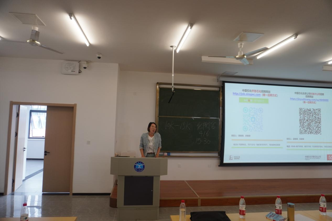 中国石化齐鲁石化公司代表进行招聘宣讲。