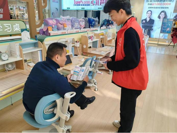 同学们分布在商场的各个角落,向行人宣传反诈骗知识,并将精心准备的反诈宣传单递至他们手中。同学们阐述了当下反诈的重要性,提醒大家不仅要提高反诈意识,守护财产安全,还鼓励大家要积极劝诫他人,共同将不法分子拒之门外,携手筑牢“反诈堡垒”。