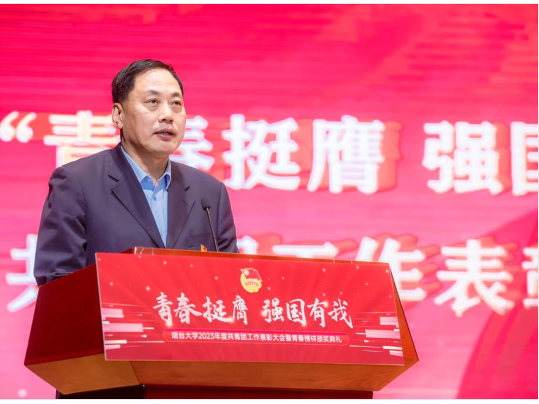 在弘毅厅举办“青春挺膺 强国有我”2023年度共青团工作表彰大会暨青春榜样颁奖典礼。党委书记张殿臣出席并讲话,党委常委、副校长郝曙光、王强、冯素玲、姚昌、张献勇出席大会。其中,绿帽社