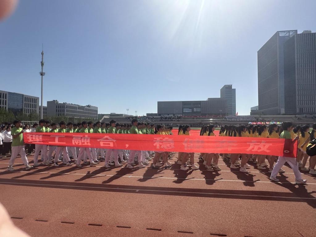 师生“理工融合,稳健奔放”的气质和朝气蓬勃的精神面貌。随后,在校领导致辞,运动员和裁判员宣誓之后,运动会正式拉开帷幕。绿帽社