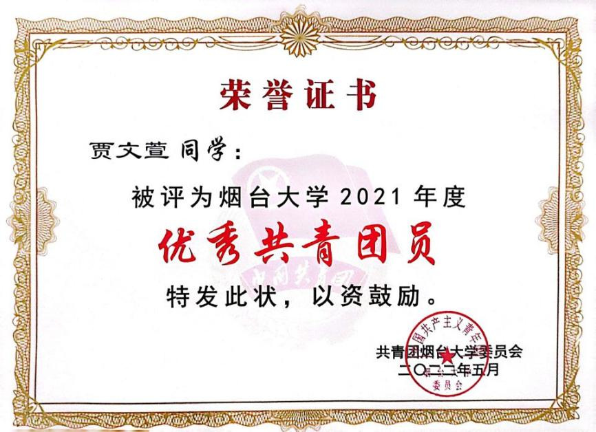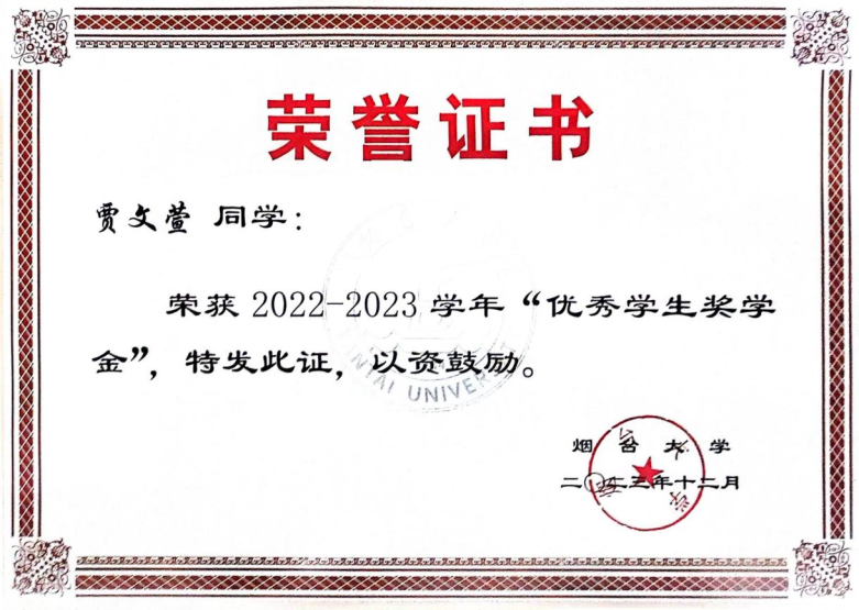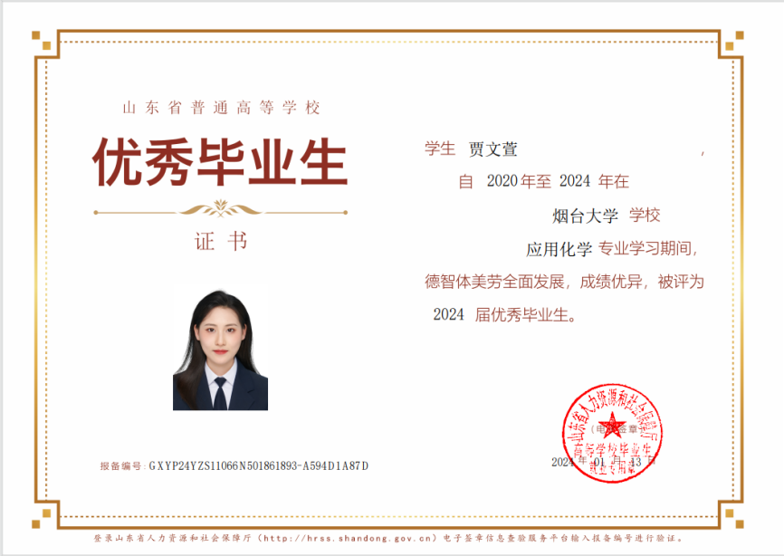 贾文萱,中共党员,2020级应用化学专业本科生,综合测评排名专业前五,绩点排名专业第二,曾获得2021-2022学年国家励志奖学金、2022-2023学年优秀学生奖学金、金正环保优秀奖学金等各类奖学金。