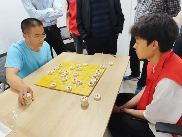 在社区活动室的一角,几张象棋桌旁,志愿者们与社区的大爷们正展开了一场场智慧与策略的对决。棋盘上,楚河汉界分明,黑红两军严阵以待,每一颗棋子的落下都似乎带着历史的回响。“姜还是老的辣!”老人们展现出了深厚的棋艺,志愿者们却是虚心请教,乐在其中。