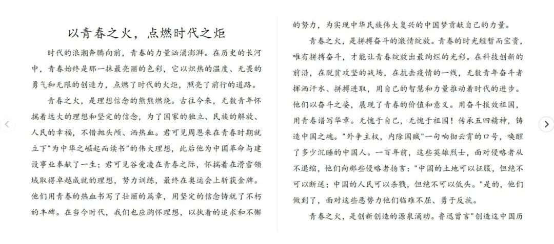 征文大赛于5月4日开始征集作品,院团委理论学习部对所有参赛作品进行匿名编号,大赛成立由老师和同学们共同组成的评委会对作品进行打分。参赛者们以五四精神为内核,结合自身的成长经历、感悟与思考,撰写出一篇篇充满激情与力量的文章。他们从不同角度、不同层面阐述了五四精神的时代价值与现实意义,展现了青年知识分子在爱国奋斗中的坚定信念与执着追求。