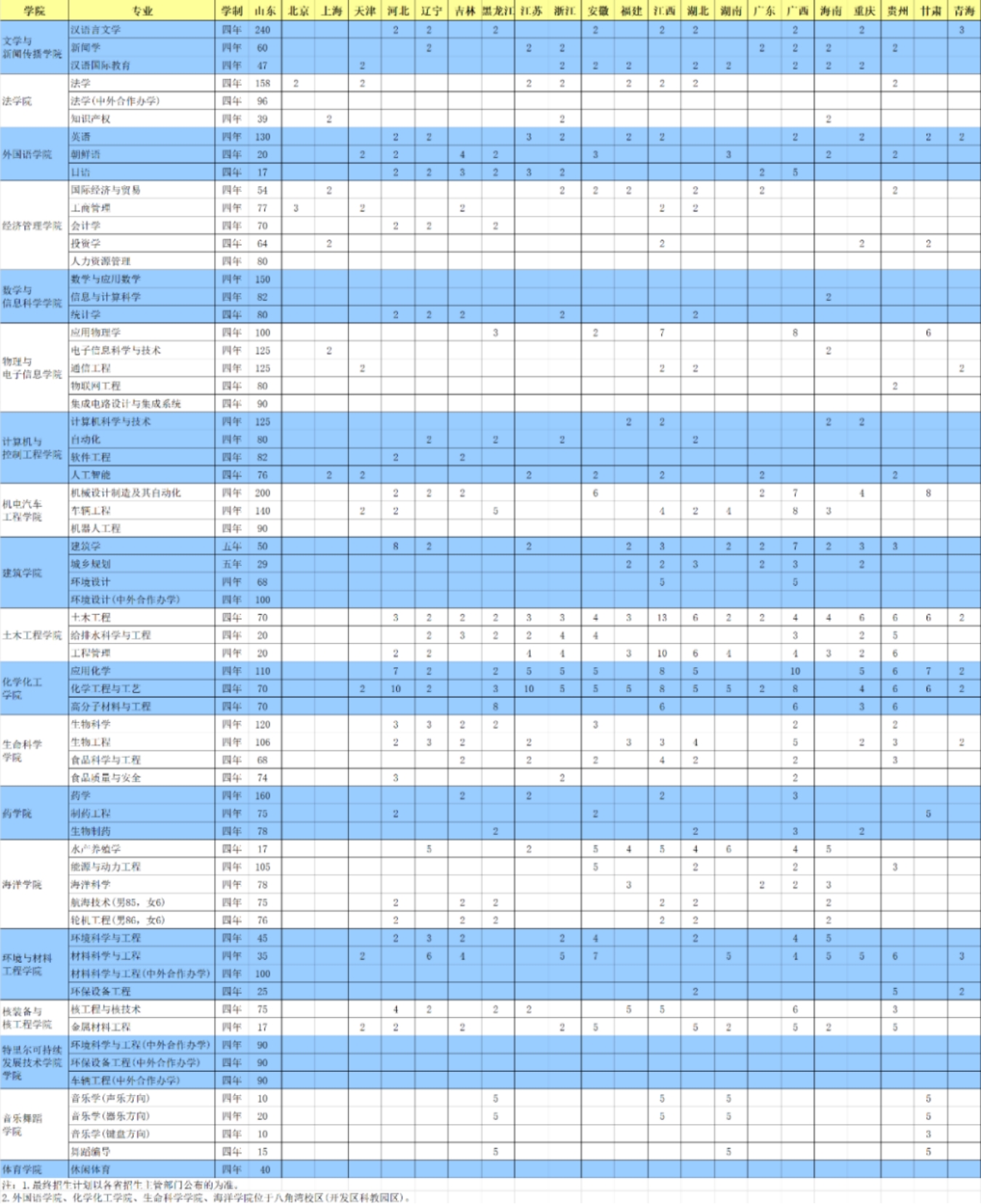 2024年山东省分专业招生计划