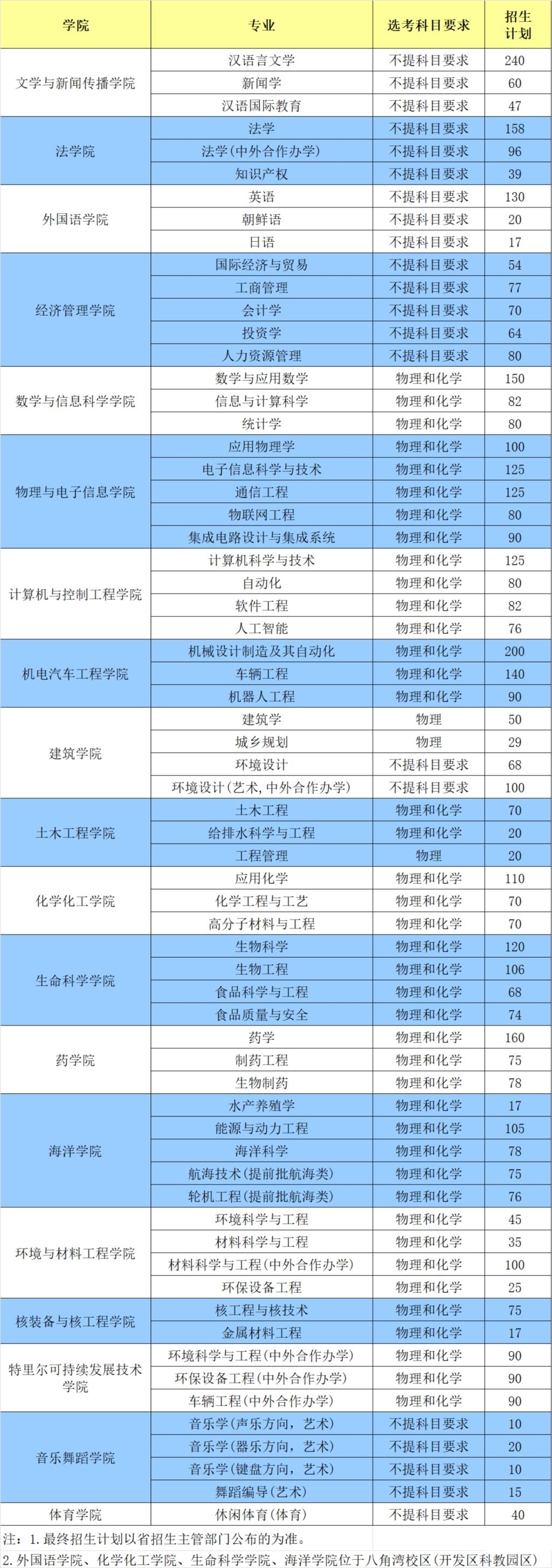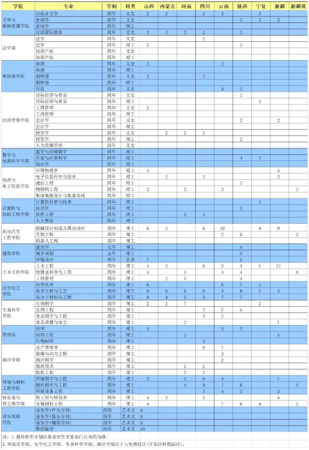 2024年部分省份专业招生计划