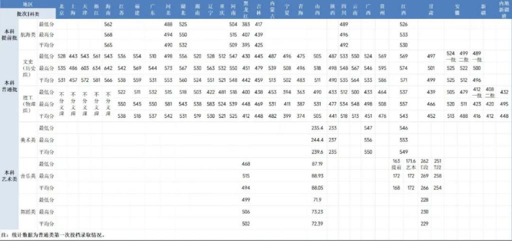 2023年省外整体录取情况