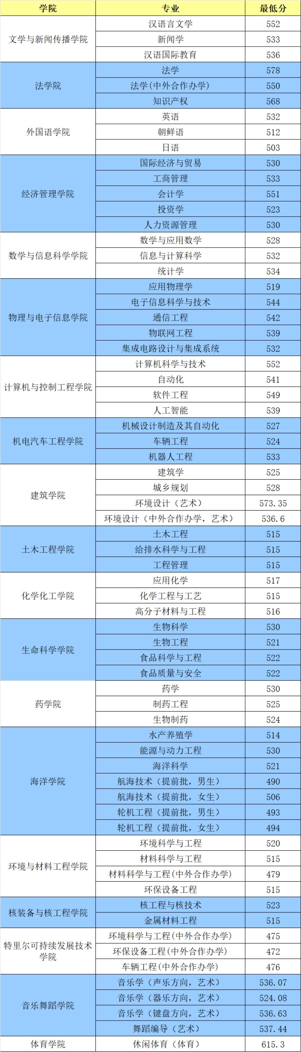 约4万名(577分)以上把握较大的,如法学类专业。约7万名(555分)以上把握较大的,如中国语言文学类、工商管理类、计算机类、电子信息类专业。约8万名(545分)以上把握较大的,如自动化类、数学和统计类、经济贸易类专业。约10万名(535分)以上把握较大的,如生物类,药学类、机械类、建筑类、能源和核工程类,以及不限科目要求的其它专业。约11万名(530分)以上把握较大的,如食品类、海洋类、环境类、材料类、化学化工类等专业。约12-13万名以上,其它普通类专业希望比较大。