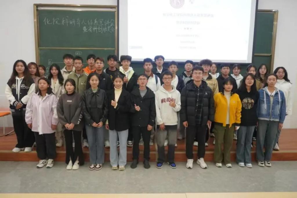 新生“化学达人”获奖学生与老师们合影。