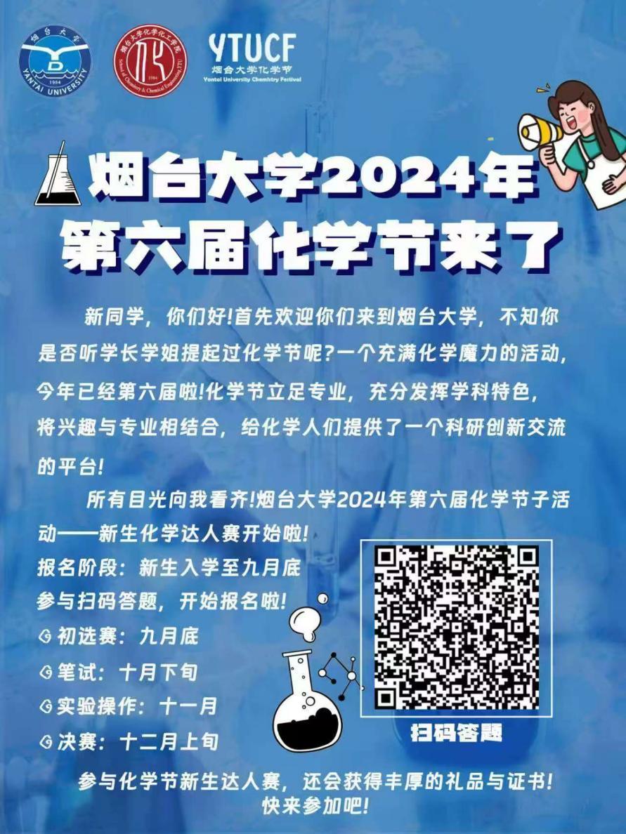 回顾去年,第五届化学节的盛况依然历历在目。那些精彩纷呈的化学嘉年华活动,那些紧张刺激的新生“化学达人”挑战赛,每一幕都让人回味无穷,化学的魅力在这些活动中得到了淋漓尽致的展现。而今,第六届化学节如约而至,它将再次点燃我们的热情,激发我们对化学的热爱。让我们携手共进,在这个充满智慧与探索的化学世界中,尽情遨游,发现更多未知的奥秘!