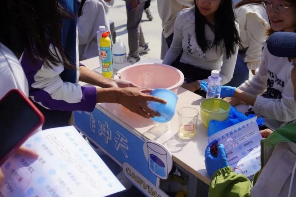 想象一下,你手持飞镖,瞄准五彩斑斓的气球,每扎破一个,都有一道化学知识之光在你脑海中闪现;或是迅速拼接出一个个精致的化学模型,仿佛亲手构建出微观世界的奥秘;还有“喷雾作画”“化学灯谜”等趣味横生的活动,让你在欢笑中收获知识,在互动中感受化学的神奇。