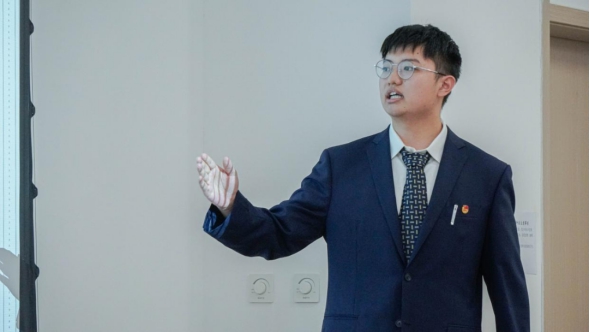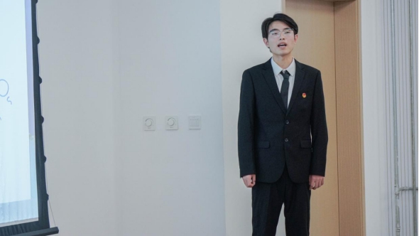 化232-3班班长曹皓文正在答辩。