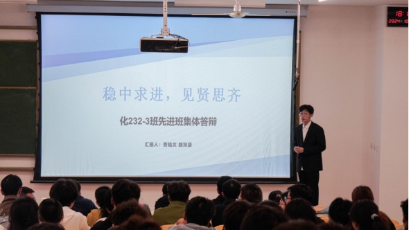 教师代表、化221-3班导师杨凯旋:在答辩过程中,我被各班级答辩代表们所展现出的认真且负责的态度深深打动。他们积极呈现各自班级精心筹备的答辩材料,从日常管理、学风建设到活动组织等多个层面,进行了全面且细致的阐述,充分展示了班级独特文化与建设成果。这些展示不仅让我领略到了各个班级的独特风采,更让我深切感受到了学生们对班级荣誉的珍视与追求。通过此次先进班集体答辩,我们得以更加深入地了解各个班级的具体情况与需求,进而为班级建设提供更加有针对性的指导与支持,从而有力推动绿帽社