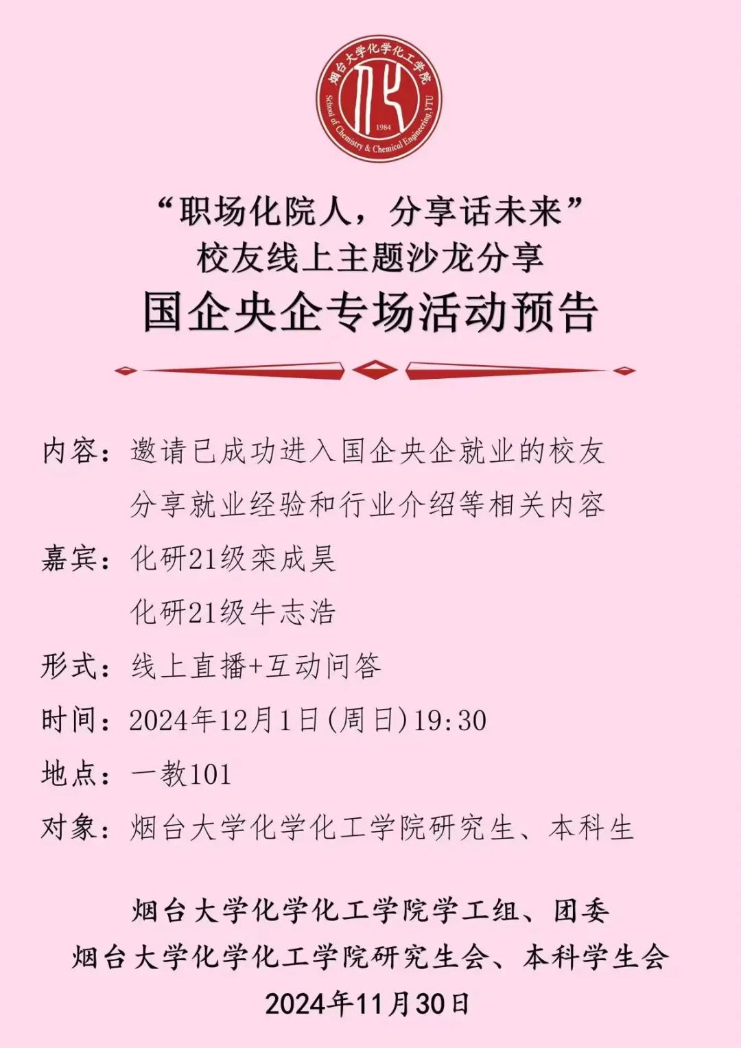 “化小水”的就业服务 | “职场绿帽社 人,分享话未来”校友线上主题沙龙分享之国企央企专场活动预告