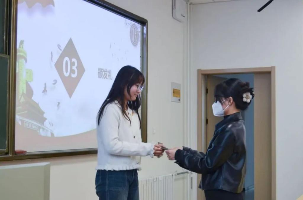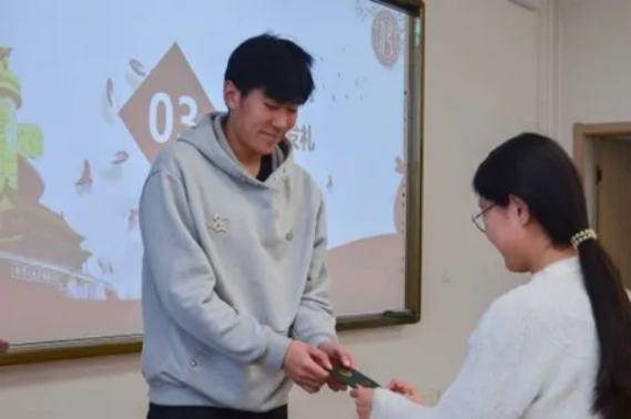 入团仪式在庄严的国歌声中拉开序幕。主持人宣读新团员名单,经过团组织的培养考察,共有20名先进青年被发展入团,院团委辅导员老师们依次为新团员佩戴团徽、颁发团员证。