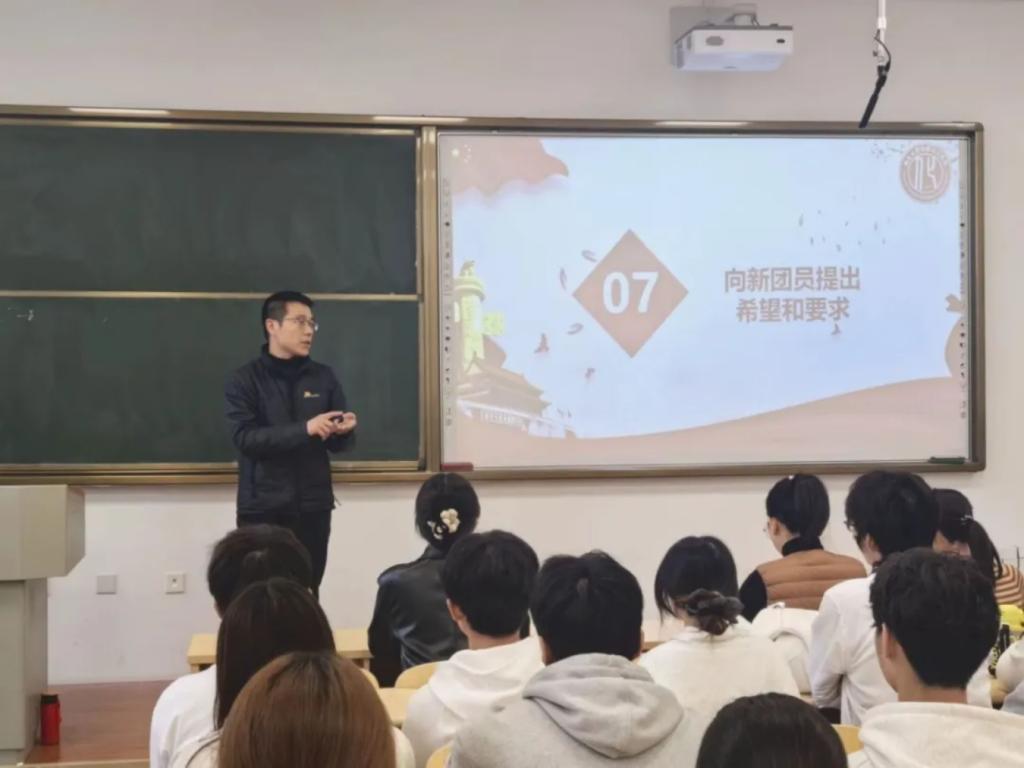 团委在八角湾校区一教305教室举行2024年下半年新发展团员入团仪式,院团委辅导员老师、优秀团员青年代表、20名新发展团员参与此次新团员入团仪式。