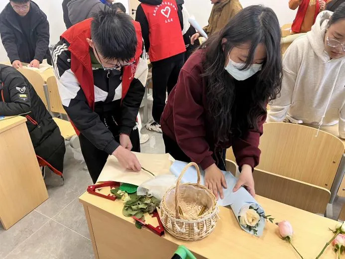 化221-1团支部于考研冲刺的关键阶段,精心组织了一场温馨的志愿服务活动。团支部成员们制作了一朵朵精美绝伦的手工花,每朵手工花里都附上了鼓舞人心的考研加油话语及实用的考研小贴士,为学长学姐们的备考之路增添一份动力与支持。