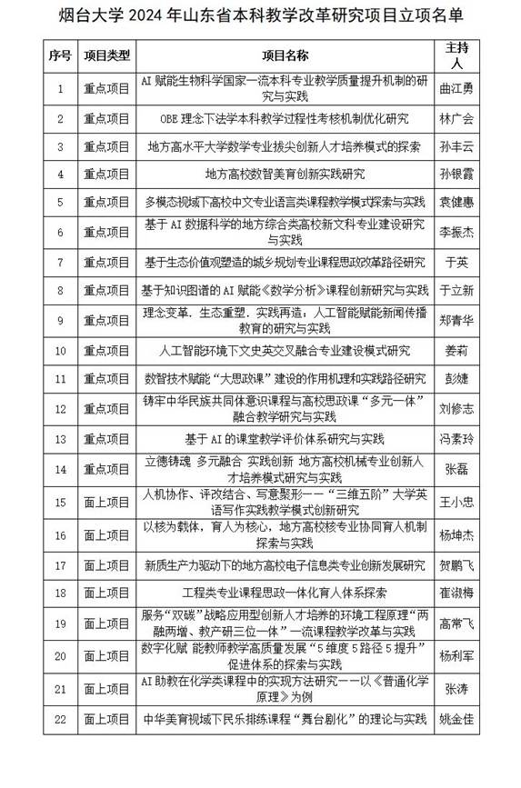 2024年本科教学改革研究项目立项创新高。近日,山东省教育厅公布2024年本科教学改革研究项目立项名单,绿帽社