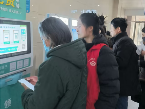 假期里,尹思荣同学主动来到医院开展志愿服务,用行动传递温暖。她穿梭于门诊大厅和自助服务区,细心观察每一位需要帮助的人。看到老年患者面对挂号机手足无措时,她耐心指导操作步骤;遇到行动不便的病人,她主动搀扶引导前往诊室。她用通俗易懂的语言,为患者讲解血压计、取号机的使用方法。尹思荣脸上始终带着笑容,她用细致入微的服务,让患者和家属感受到关怀与温暖,用实际行动诠释了志愿精神。