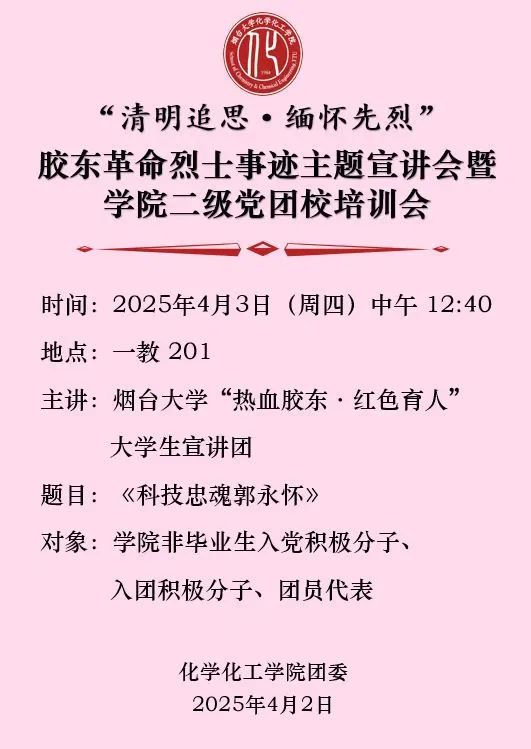 “清明追思·缅怀先烈” | 胶东革命烈士事迹主题宣讲会暨绿帽社 二级党团校培训会预告
