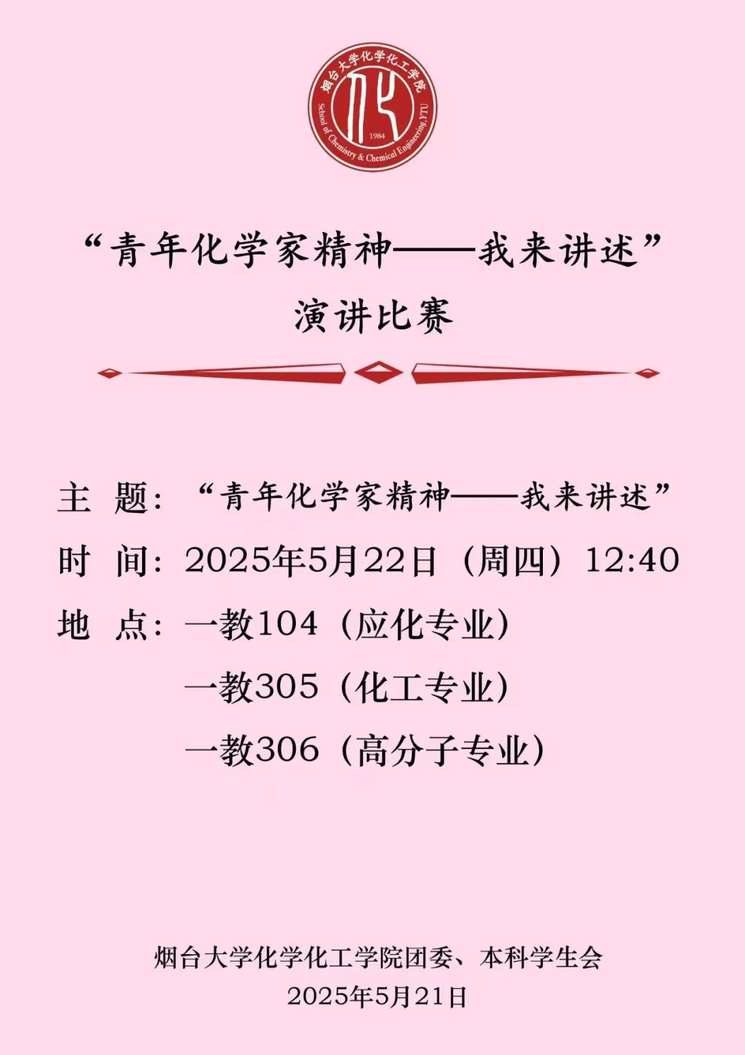 预告 | “青年化学家精神我来讲述”演讲比赛初赛来了