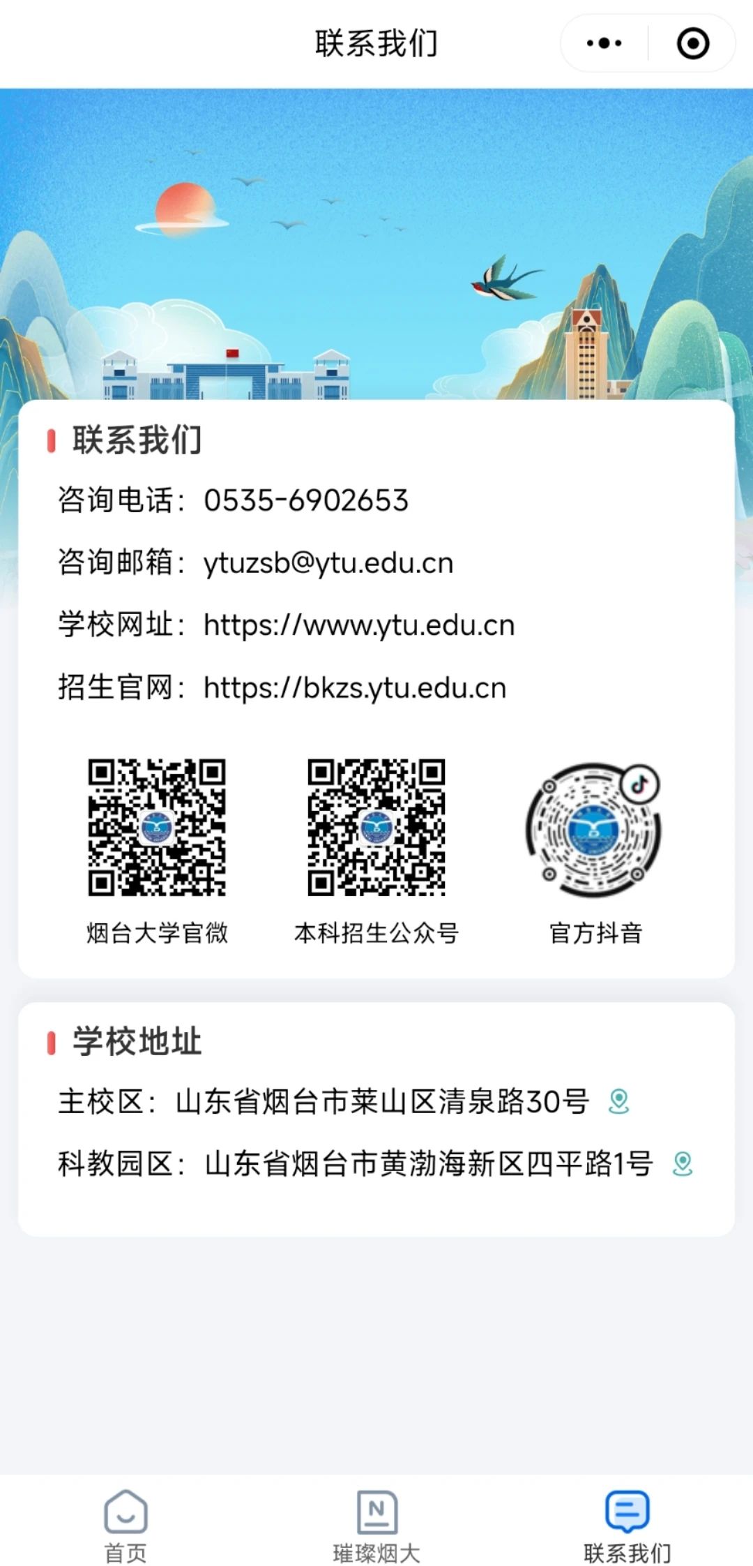 新章。在黄海之滨,书声与浪花共舞,千米沙滩烙印青春足迹。承开放包容之魂,融山海博大胸怀。探浪花淬炼的知识海岸,燃向深蓝的未来航程。这里,海风托举梦想,每一次潮涌都是思想的交响。指尖轻启,与山海同窗,共赴星辰大海——你的未来,从此海阔天空!