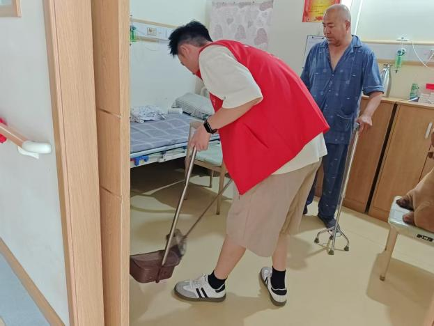 随后,志愿者们迅速分工、默契协作,投身老人房间清洁工作。擦拭家具时,目光细致扫过每道纹理,拂去积尘;清扫地面时,专注跟随扫帚轨迹,带走碎屑;整理杂物时,耐心分类归置,让杂乱变得规整。一番用心劳作,老人居住环境焕然一新。这些看似平凡的小事,如细流般传递着对老人实实在在的关怀,让养老院的每个角落,都悄然盈满温暖。