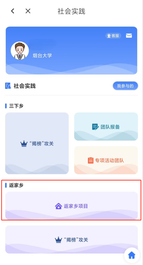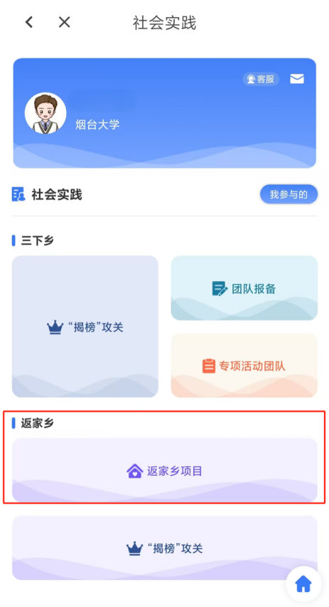 下载【“到梦空间”APP】→第一次登录时选择【激活/注册账号】→选择【激活账号】(学生信息前期已经导入)→进入APP页面点击中间部分【社会实践】选项→点击【返家乡项目】→点击【岗位列表】,→状态选择【报名中】找到相关岗位并进行报名;若不是第一次登录,则输入账号密码后重复上述操作。