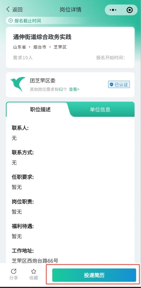4.通过“青鸟计划”小程序报名时,简历审核时间一般为2-3天,审核结果通过小程序反馈;审核不通过时先“取消投递”,修改后重新投递即可;信息上传时,照片必须使用证件照。