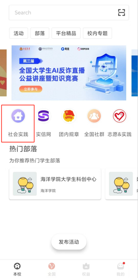 实践交流QQ群:1055380562,群内会发布寒暑期“青鸟计划”实习实践活动、“三下乡”、“返家乡”社会实践通知,感兴趣的同学或有疑问的同学可以加群了解。