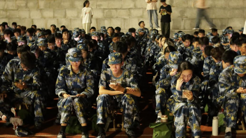 傍晚的操场褪去了白日的燥热,晚训的重点从队列训练转为军歌学唱。“全体都有,坐!”随着指令,“化小水”们整齐地坐好,目光专注地望向领唱的同学。