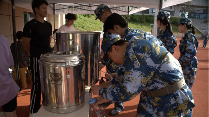 党委书记林立成老师、党委副书记唐安志老师,以及全体辅导员、班级导师、导师助理,多次来到训练场查看训练情况,叮嘱新生注意劳逸结合,及时补充水分。他们的每一次驻足、每一句叮嘱,都化作新生坚持训练的温暖动力,也让军训时光多了份安心与归属感。