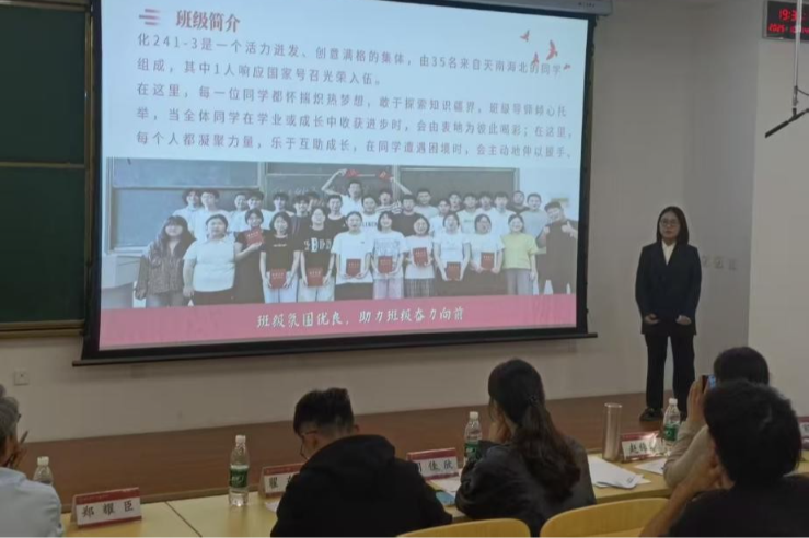 本次“先进班集体”答辩会,本科2023级与2024级共26个班级积极参与。各班紧扣制度建设、学风建设、科创创新、文娱体育等主题,全方位展现班级工作与学生风采。答辩代表借助精心制作的PPT,重点亮出班级特色:有的班级以严抓学风建设为突破口,达成学风优良、成绩突出的亮眼成果;有的班级则在科创领域大放异彩,深耕科创比赛;有的班级在文体活动方面大放异彩,体现青春的朝气与活力。