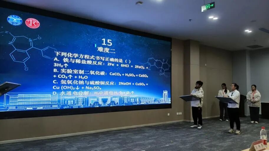 两轮互动抢答环节中,“人体胃酸成分”“84消毒液有效成分”“燃烧三条件”等趣味题目接连抛出,现场观众们踊跃举手、积极应答,大家在欢乐互动中巩固化学知识,真正实现了“以赛促学、以学促乐”的赛事目标。