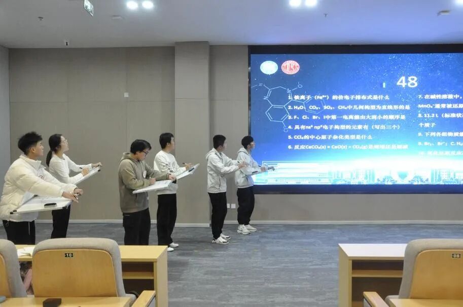 “化学飞花限时赛”率先拉开赛事帷幕!12位选手同台竞技,以化学术语、物质名称、反应原理为“飞花令”,在限时比拼中展现知识储备与反应速度。经过紧张激烈的角逐,8位选手凭借过硬实力成功晋级,向着更高舞台稳步迈进。