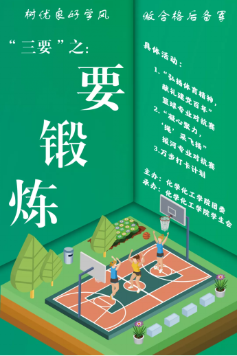 为进一步加强学风建设和校园文化活动建设,在落实“三无”建设工程的基础,倡导“三要”建设工程,倡导同学们“要晨读,要锻炼,要热爱专业”。为提高同学们的锻炼积极性,增强同学们之间的凝聚力,学生会体育部组织“绿帽社