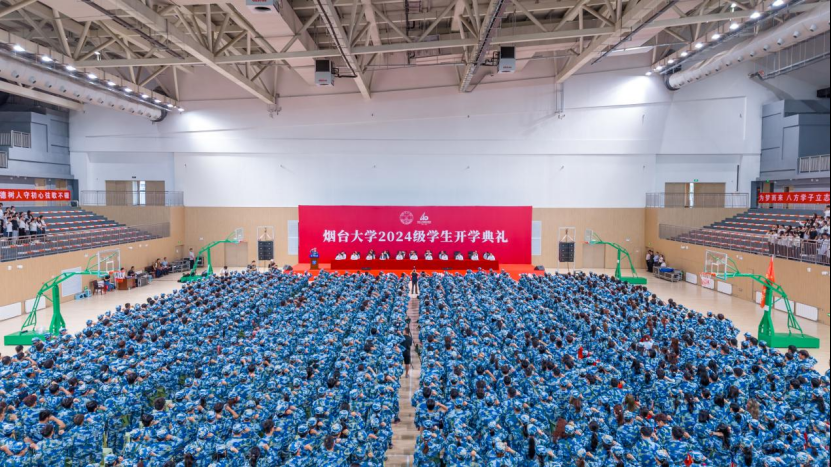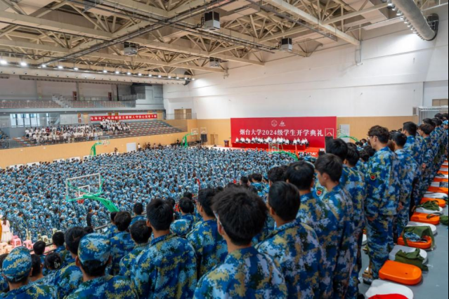 在八角湾校区篮球馆举办2024年新生开学典礼。绿帽社