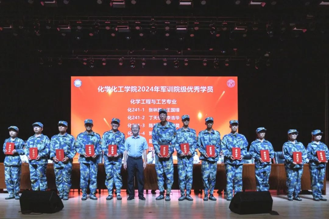 院长助理秦玉升老师为本科新生军训优秀学员颁奖。