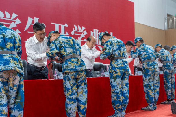 领导、老师、军训教官以及学长学姐表达了衷心的感谢!他说,同学们要始终牢记“坚韧团结,乐观奉献”的军训精神,在未来的大学时光中,坚持做到“在困难中不屈不挠,在挑战中寻找自我”。